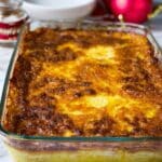 - Bake: Place the dish in the preheated oven and bake for 50 to 55 minutes, or until the top is golden brown and a toothpick inserted in the center comes out mostly clean.