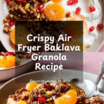 This Air Fryer Baklava Granola is a delightful, aromatic blend of oats, walnuts, and pistachios, sweetened with honey and spiced with cinnamon. Using the air fryer method, it achieves a perfectly toasted, golden crisp texture reminiscent of the flavors of traditional baklava, making it a wholesome and crunchy snack or breakfast topping.