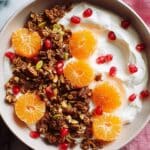 This Air Fryer Baklava Granola is a delightful, aromatic blend of oats, walnuts, and pistachios, sweetened with honey and spiced with cinnamon. Using the air fryer method, it achieves a perfectly toasted, golden crisp texture reminiscent of the flavors of traditional baklava, making it a wholesome and crunchy snack or breakfast topping.