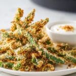 - Serve: Serve the crispy green bean fries hot, accompanied by garlic aioli or ranch dressing for dipping.