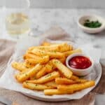 - Serve: Remove the fries once crispy and golden brown. Serve immediately with ketchup or your favorite dipping sauce.