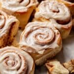Store leftover rolls in an airtight container at room temperature for up to 2 days or refrigerate for up to 5 days. Reheat gently in the microwave or a warm oven to soften the frosting before serving.