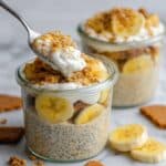- Serve and Garnish: In the morning, top the soaked oats with the remaining 2 tablespoons of vanilla Greek yogurt. Garnish with additional sliced bananas and crushed graham crackers as desired before enjoying.