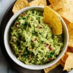 This Best Ever Guacamole recipe is a fresh, easy, and authentic Mexican classic made with ripe avocados, zesty lime juice, and vibrant fresh ingredients. Perfectly seasoned and customizable in texture, it’s ideal as a snack or appetizer served with tortilla chips.