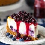 Keywords: blueberry cheesecake, cheesecake with blueberry sauce, baked cheesecake, graham cracker crust, creamy cheesecake dessert