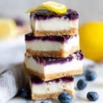 Keywords: blueberry cheesecake bars, lemon protein bars, healthy protein dessert, Greek yogurt cheesecake, protein packed dessert, low fat cheesecake bars