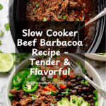 Keywords: braised beef, beef barbacoa, slow cooker barbacoa, Mexican beef recipe, slow-cooked beef, chipotle beef, easy barbacoa, taco filling, beef chuck roast recipe