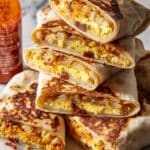Keywords: Breakfast Crunchwrap, Crunchwrap Supreme, Breakfast Wrap, Bacon and Eggs Wrap, Crispy Breakfast Wrap, Jalapeño Sauce, Hash Browns