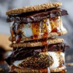 This Brown Butter Graham Cracker Blondie S’mores recipe combines rich, nutty brown butter blondies with the classic s’mores flavors of toasted marshmallows, dark chocolate caramel squares, and a luscious homemade caramel sauce. Perfectly chewy blondies are baked with graham cracker crumbs for added texture and topped with gooey marshmallows and decadent chocolate, creating an irresistible treat that captures the essence of campfire s’mores in an easy-to-make dessert.