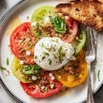 This Burrata Salad is a fresh and elegant dish, perfect for showcasing ripe heirloom tomatoes. Creamy burrata pairs beautifully with tangy shallots and crunchy toasted panko, making it a delightful starter or light meal.