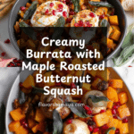 This Burrata with Maple Roasted Butternut Squash and Pomegranate Balsamic Reduction is a delightful blend of creamy, sweet, and tangy flavors. It’s a perfect elegant appetizer or light meal that combines seasonal ingredients for a stunning presentation.