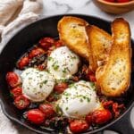 Store any leftovers in an airtight container in the refrigerator for up to 2 days. Reheat gently in a skillet over low heat to avoid breaking up the burrata. It’s best enjoyed fresh, so avoid storing burrata on the tomato mixture if possible. Toast fresh bread before serving again.