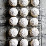 - First Sugar Coating: Pour the powdered sugar into a small bowl. Gently roll each warm cookie in the powdered sugar ensuring all sides are coated. Place the cookies back onto the cooling rack.