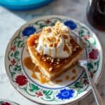 Keywords: caramel apple bread pudding, brioche bread pudding, apple walnut dessert, vanilla bean Skyr pudding, homemade caramel sauce