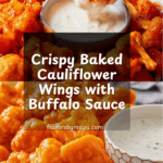 Crispy and flavorful cauliflower wings baked to golden perfection and tossed in a tangy buffalo sauce, served with ranch dressing and optional celery sticks for a delicious vegetarian appetizer or snack.