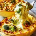 PrintCheesy Broccoli Cheddar Spaghetti Squash Recipe