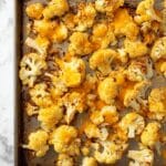 Keywords: Cheesy Roasted Cauliflower, roasted cauliflower, cheesy cauliflower, side dish, vegetarian recipe, baked cauliflower, sharp cheddar cauliflower