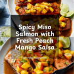 This Chili Miso Salmon with Peach Mango Salsa is a flavorful, vibrant dish that marries the savory umami of miso and chili with a fresh and sweet tropical salsa. The salmon is marinated in a rich miso-soy mixture, seared to perfection, then glazed with the marinade to a glossy finish. Topped with a zesty peach mango salsa, this recipe delivers a perfect balance of spicy, sweet, and smoky flavors ideal for a quick yet impressive weeknight dinner or special occasion.