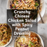 This vibrant Chinese Chicken Salad combines crunchy Napa cabbage, colorful shredded carrots, and tender cooked chicken, all tossed in a rich and creamy Asian peanut dressing. Garnished with crunchy fried noodles, chopped peanuts, and fresh scallions, this salad offers a delightful balance of textures and flavors with a hint of spicy Sriracha heat.
