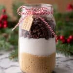 This Chocolate Chip Cookie in a Jar is a delightful gift and easy-to-make treat. The dry ingredients are layered attractively in a jar, ready to be mixed with wet ingredients for fresh-baked cookies anytime. Perfect for gifting or a fun baking activity, these classic cookies come out golden and chewy with rich chocolate chips in every bite.