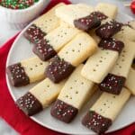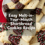 Keywords: shortbread cookies, buttery cookies, vanilla shortbread, chocolate dipped cookies, easy cookie recipe, holiday cookies