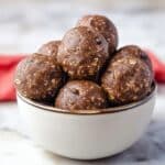 Keywords: chocolate protein balls, no bake snack, healthy snack, protein bites, peanut butter snacks, easy protein balls