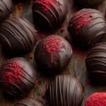 - Garnish truffles: While the coating is still wet, sprinkle reserved raspberry powder over the top for a decorative and flavorful finish.