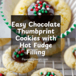 Delight in these festive Chocolate Thumbprint Cookies featuring buttery mini cookie cups filled with rich, warm hot fudge and topped with colorful Christmas sprinkles. Perfectly baked with a soft, tender texture and a luscious chocolate center, they make a charming holiday treat that’s both fun to make and irresistibly delicious.