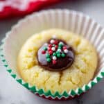 Chocolate Thumbprint Cookies are delightful little treats with a buttery base and a rich hot fudge center. These festive cookies are finished with colorful sprinkles, making them perfect for holidays or any special occasion.