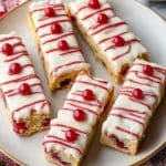 Delight in these festive Christmas Cherry Bars featuring a buttery shortbread crust topped with tangy dried tart cherries and sweet white chocolate chips, all finished with a crumbly topping. Perfect for holiday gatherings or a cozy winter treat.