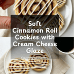 Keywords: cinnamon roll cookies, cinnamon sugar cookies, cream cheese glaze cookies, soft cinnamon cookies, easy dessert cookies