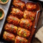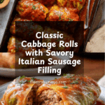 Classic homemade cabbage rolls filled with a savory mixture of Italian sausage, ground beef, rice, and aromatic spices, baked in a flavorful tomato sauce until tender and delicious. This comforting dish is perfect for family dinners and showcases the versatility of cabbage in a hearty, satisfying meal.