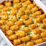 This hearty Cowboy Casserole is a comforting and flavorful baked dish packed with seasoned ground beef, corn, creamy chicken soup, and melted Colby Jack cheese, topped with crispy frozen potato rounds for a satisfying crunch. Perfect for a weeknight dinner, it combines bold southwestern spices and a creamy texture that will please the whole family.