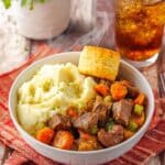 Keywords: pot roast, slow cooker recipe, beef stew, comfort food, Cracker Barrel style, brown gravy, slow cooking, easy dinner