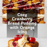 This cranberry bread pudding is a cozy, comforting dessert perfect for chilly days or festive gatherings. Made with tender challah or brioche bread cubes soaked in a rich, spiced custard and studded with tart cranberries, it’s finished with a luscious orange-tinged icing. It’s a delightful twist on classic bread pudding that’s sure to impress.