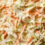 Store coleslaw in an airtight container in the refrigerator for up to 3 days. It may release more liquid over time, so give it a good toss before serving. It’s best enjoyed cold and fresh, not recommended for freezing.