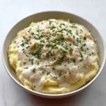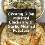 This Creamy Dijon Mustard Chicken recipe features tender chicken breasts marinated in garlic and Dijon mustard, seared to perfection, then simmered in a rich and flavorful cream sauce with shallots, garlic, and herbs. Served alongside smooth, buttery mashed potatoes infused with fresh chives, this comforting dish is perfect for a hearty yet elegant meal.
