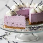 Keywords: lavender cheesecake, no-bake cheesecake, graham cracker crust, creamy dessert, lavender syrup, easy cheesecake recipe