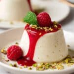 PrintCreamy Vanilla Panna Cotta with Raspberry Coulis and Pistachios Recipe