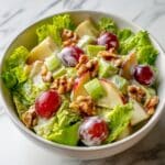 A refreshing and classic Waldorf Salad featuring crisp apples, juicy grapes, crunchy celery, and toasted walnuts, all tossed in a creamy lemon-mayonnaise dressing and served on a bed of fresh lettuce. This salad is perfect as a light lunch or an elegant side dish.
