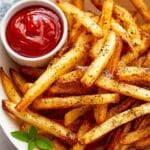 Enjoy perfectly crispy and flavorful French fries made effortlessly in the air fryer! These golden Russet potato fries are seasoned with garlic powder, sea salt, and black pepper for a delicious snack or side dish that’s healthier and ready in under 30 minutes.