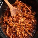 Store leftover crockpot BBQ chicken in an airtight container in the refrigerator for up to 3 days. Reheat gently in the microwave or on the stovetop until warmed through. It also freezes well for up to 2 months—thaw overnight in the fridge before reheating.