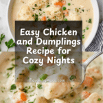 Easy Chicken and Dumplings is a comforting, classic dish perfect for cozy nights. Tender chicken and fluffy dumplings come together in a flavorful, hearty broth that’s simple to make and sure to satisfy the whole family.