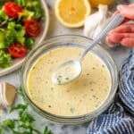 This Easy Garlic Dressing is a creamy, tangy, and flavorful dressing perfect for salads, dipping, or drizzling over roasted vegetables. Made with fresh garlic, mayonnaise, red wine vinegar, lemon juice, Dijon mustard, olive oil, oregano, and Parmesan cheese, it combines bold and fresh ingredients for a simple yet delicious dressing that can elevate any dish.