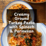 Keywords: ground turkey pasta, easy pasta recipes, healthy pasta dishes, turkey dinner, weeknight meal, creamy tomato sauce, spinach pasta, quick stovetop dinner