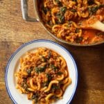This Easy Ground Turkey Pasta Dish combines lean ground turkey, a rich tomato and cream sauce, and fresh spinach for a satisfying and flavorful meal. Enhanced with garlic, onion, oregano, chili flakes, and parmesan, this quick stovetop recipe is perfect for a hearty weeknight dinner.