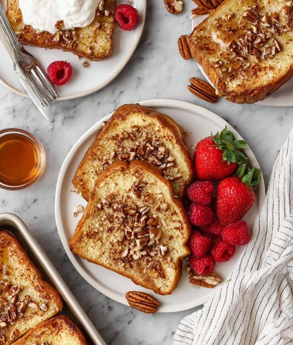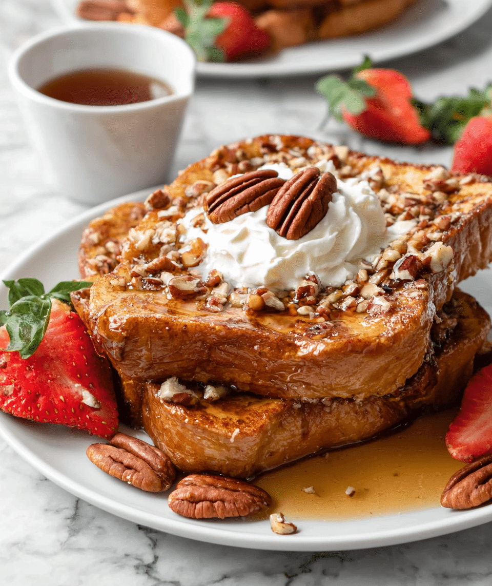 This Easy Overnight French Toast recipe is a perfect make-ahead breakfast that combines the rich flavors of cinnamon, vanilla, and maple syrup soaked into thick slices of French bread. Soaked overnight and baked to a golden perfection, it offers a comforting, custardy texture with a delightful crunch from chopped walnuts. Serve it warm with whipped cream and extra maple syrup for a delicious morning treat ideal for weekends or special occasions.