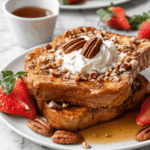 This Easy Overnight French Toast recipe is a perfect make-ahead breakfast that combines the rich flavors of cinnamon, vanilla, and maple syrup soaked into thick slices of French bread. Soaked overnight and baked to a golden perfection, it offers a comforting, custardy texture with a delightful crunch from chopped walnuts. Serve it warm with whipped cream and extra maple syrup for a delicious morning treat ideal for weekends or special occasions.