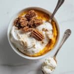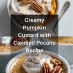 This easy pumpkin custard is a smooth, spiced dessert that captures the flavors of fall in every bite. With a creamy texture and a crunchy candied pecan topping, it’s perfect for cozy evenings or holiday gatherings.