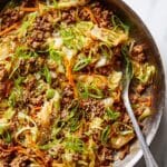 Keywords: egg roll bowl, ground pork recipe, Asian skillet dish, quick dinner, pork and cabbage stir fry